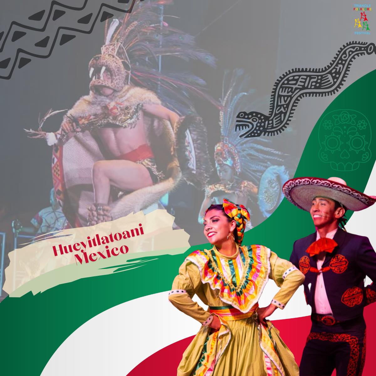 Gør dig klar til en eksplosion af farver og rytmer, når den vilde dansegruppe Hueyitlatoani fra Mexico kommer til Triangle Folklore Festival 2026!
